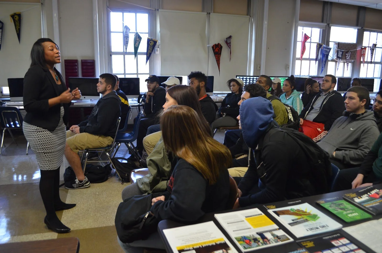 At most community colleges, there are unique support systems put in place to increase retention rates among the student body they serve. The Community College of Philadelphia offers career services, educational support services, counseling, academic advising, and several organizations catered to their student demographic. A representative from CCP’s Center for Male Engagement visited our school and held an information session for our senior guys. He spoke about the community and levels of support that were available through the center, including life skills workshops and career and leadership development training.
