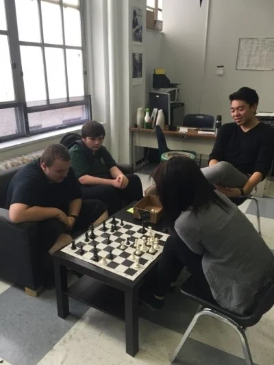 I catch him later that week during lunch playing chess in the PLUS Center. I peek over some shoulders and watch him play. He’s pretty good. The math teacher is starting a chess team so I recommend he join. Everyone around the table scoffs at the idea, saying that it’s social suicide, so I drop it. (It’s worth noting that these guys play chess religiously.)