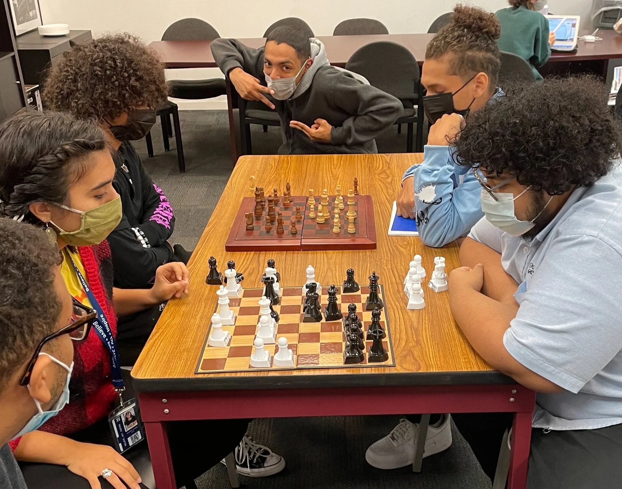 Juliette playing chess with a few of her students!