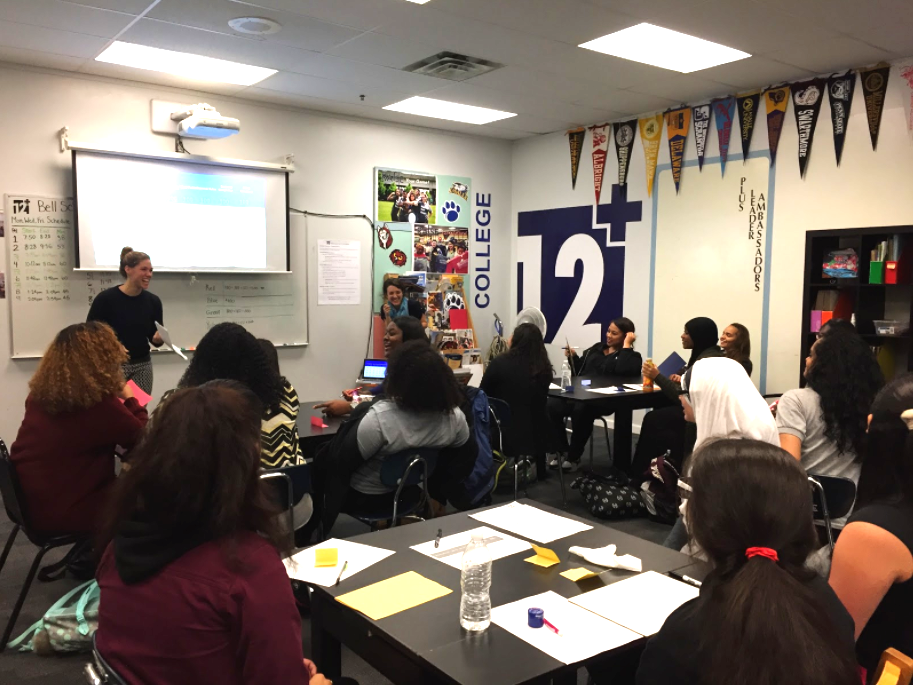 During Fellows training in August, the Site Directors were not joking around when they warned the Fellows that “Miss” or “Mister” would be the most commonly used word in the PLUS Centers. Despite their concrete warning, I pushed it to the back crevice of my brain and shockingly experienced it first-hand during one of KHSA’s busiest day at the PLUS Center. It was third period lunch, and students stampeded through the solid wooden doors, dropped their PLUS passes into the blue bucket, pushed and pulled for seats, and competed in a game of rock-paper-scissors of the utmost intensity for Chromebooks. No, not really to that extent, but that scene cinematically played in my mind after I noticed that they, somehow and at some time, had occupied all the blue seats and seized all the remaining laptops. By the way, I titled that scene in my mind “Mission Possible.”
